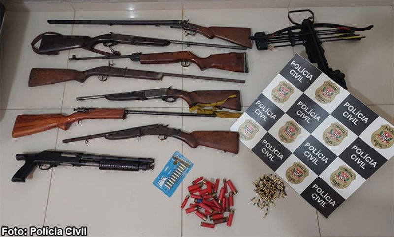 "O armamento apreendido estava no interior de uma casa localizada na cidade e o morador foi autuado em flagrante delito por posse ilegal de armas de fogo de uso permitido", informa a Polícia Civil.