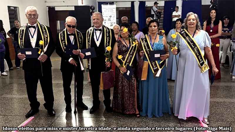 O encerramento do evento, realizado na sexta-feira (3), contou com o tradicional concurso de miss e mister terceira idade. Nove mulheres e cinco homens participaram, representando diversas instituições locais, como o Fundo Social de Solidariedade, Prolonga Vida II, Lar dos Velhos, Residencial Geriátrico Villa Anna e Home Care, Centro Dia do Idoso (PAI Nosso Lar) e o Centro de Convivência da Terceira Idade.