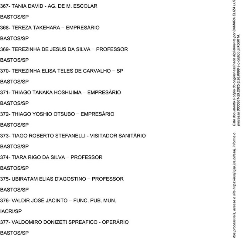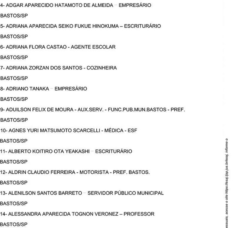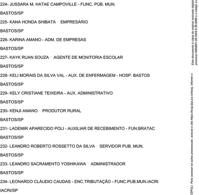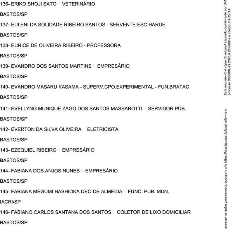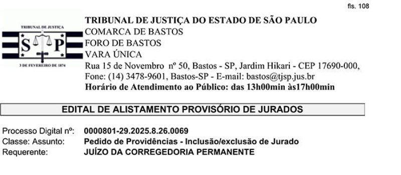 Edital de Alistamento Definitivo de Jurados – Vara Única da Comarca de Bastos - SP