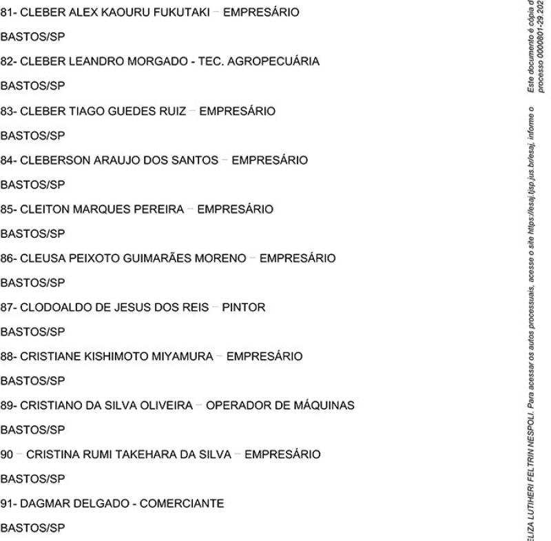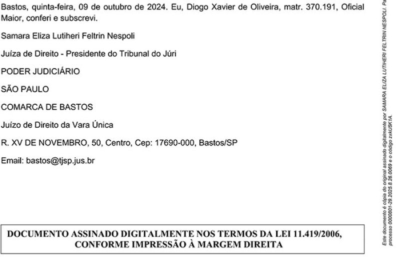 Juízo de direito da Vara Única da Comarca de Bastos/SP