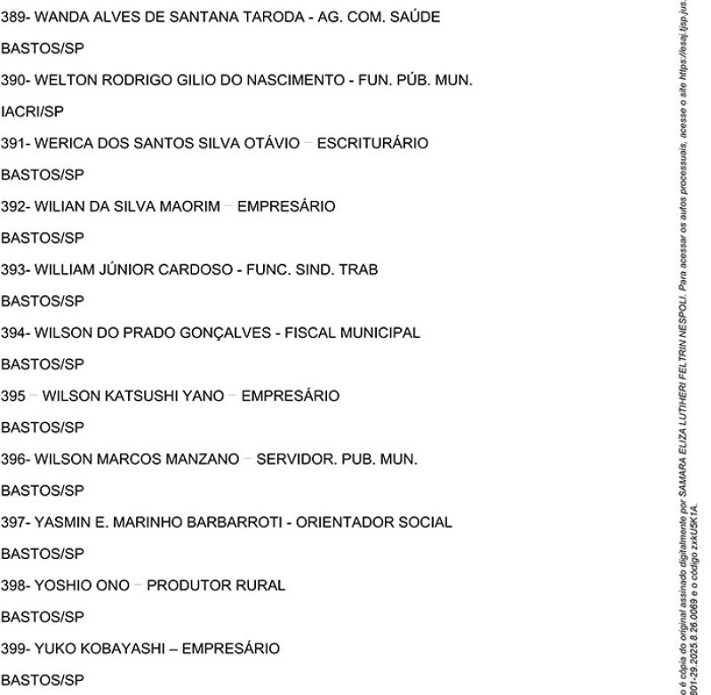Bastos, 16 de Novembro de 2025
