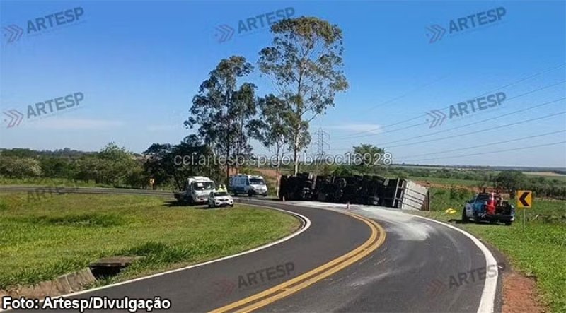 Segundo a Agência de Transporte de São Paulo, o motorista perdeu o controle do veículo, e a carreta acabou tombando no canteiro lateral da alça de acesso no km 479. O motorista sofreu ferimentos leves.