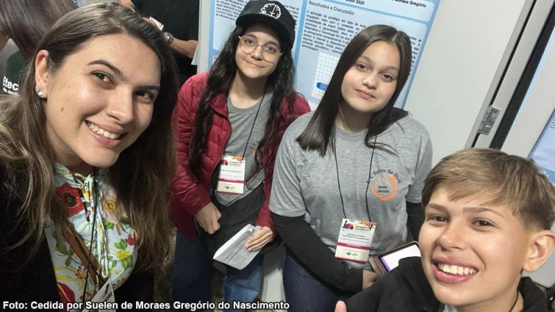 Os estudantes da professora Suelen de Moraes Gregório do Nascimento, Maria Vitória Gasparotto Martins, Isabella Ghiraldelli, Guilherme Augusto de Moraes Gonçalves e Iago da Silva Braide, do Nível II - alunos do 6º ao 9º Ano do Ensino Fundamental da Escola Estadual Sylvio de Giulli, receberam menção honrosa com o projeto Classificação de Triângulos: Uma Ferramenta Interativa para o Ensino de Geometria Plana.