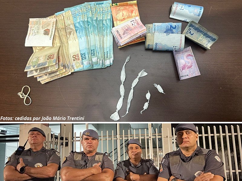 Um indivíduo foi preso no interior de um bar em Queiroz (SP) após ser flagrado com porções de cocaína e mais de R$ 4 mil em dinheiro. A ocorrência foi registrada nesta sexta-feira (28) pela Polícia Militar, através da equipe do 1º sargento Henrique e cabo Goldoni e cabo Genilson e cabo Dênis, com apoio da Força Tática do 1º sargento Fantes, cabo Alan e cabo James.
