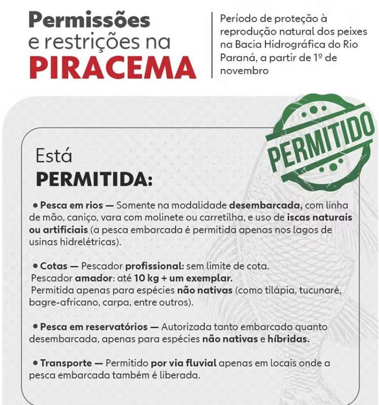 Um homem foi flagrado pela Polícia Militar Ambiental, nesta terça-feira (9), em Parapuã (SP), usando um petrecho de pesca em um local onde a prática é proibida o ano todo. Além disso, a pesca está restrita por causa do período de reprodução dos peixes, a Piracema.
