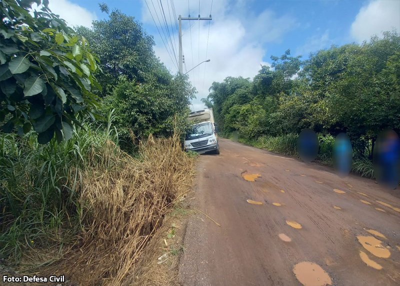 Um poste de energia elétrica evitou o tombamento de um caminhão Mercedes Benz Accelo que caiu em um buraco às margens da estrada rural que liga o prolongamento da Rua Antônio João, em Bastos (SP) a Rodovia Brigadeiro Eduardo Gomes (SP-457), na manhã desta segunda-feira, dia 15.
