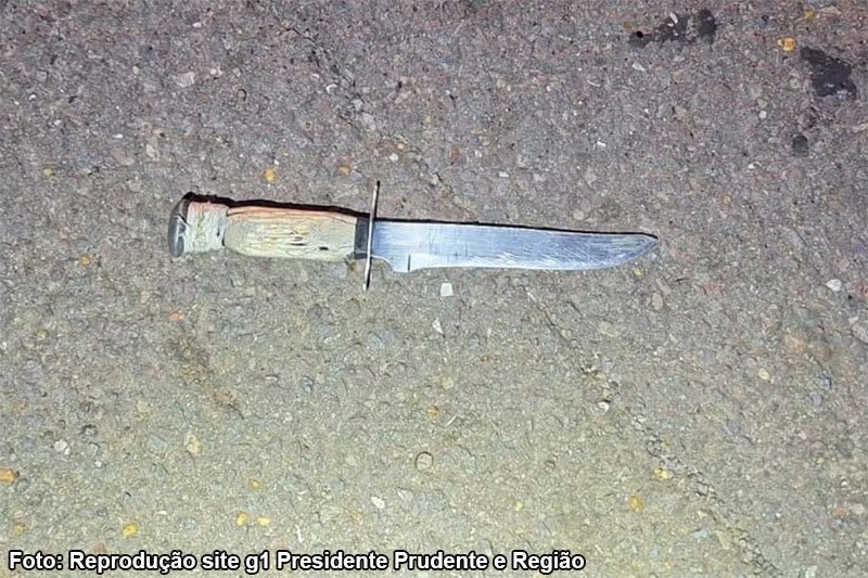Ainda dentro da viatura, os policiais solicitaram que o suspeito levantasse a camiseta para verificar se escondia algum objeto. Nesse momento, foi constatado que ele portava uma faca na cintura.