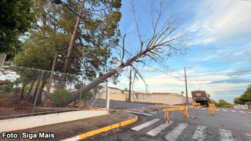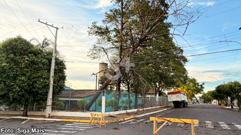 A árvore, localizada na esquina da área interna da escola, tombou sobre a rede elétrica e interrompeu o fornecimento de energia. Equipes da Prefeitura estiveram no local e interditaram as vias por segurança. Técnicos da Energisa também foram acionados para a remoção da árvore e o restabelecimento seguro do serviço aos moradores afetados. Até a publicação deste conteúdo os serviços ainda não haviam sido realizados.