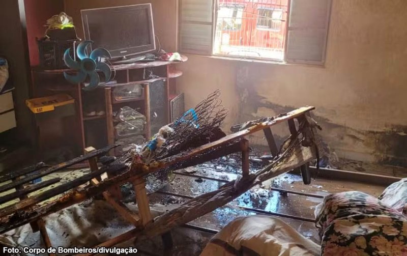 Ainda segundo a corporação, o incêndio começou em um quarto da casa e atingiu uma cama e um colchão, que ficaram destruídos.