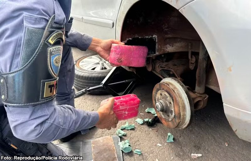 Durante a fiscalização, os policiais encontraram 22 tabletes de haxixe escondidos em um fundo falso nas caixas de ar do carro, próximas às rodas traseiras. Ao todo, foram apreendidos 23 quilos da droga.