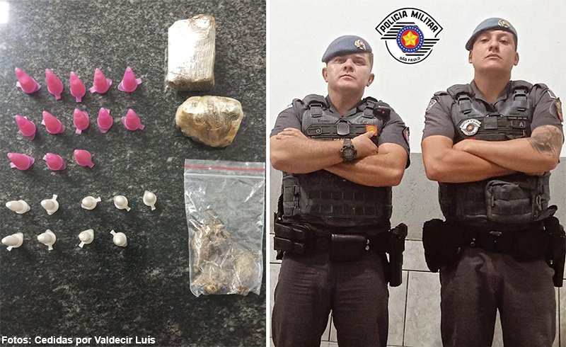 Os policiais militar acrescentam que, após apreenderem 13 eppendorfs de crack, 9 eppendorfs de cocaína, dois tabletes de maconha embalados em papel film, uma embalagem de maconha fracionada que estavam no interior da sacola, deram voz de prisão por tráfico, resistência e lesão corporal ao acusado e se descolocaram para a UPA de Tupã para atendimento médico e depois seguiram para a CPJ onde foi registrado o flagrante de tráfico de drogas e o indiciado ficou a disposição de audiência de custódia.