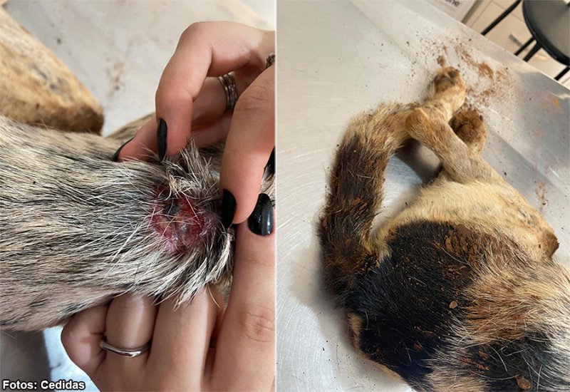 "Testemunhas relataram que foram vistos alguns movimentos de veículos na noite anterior e hoje (12) uma pessoa passando pelo local e ouviu choro de cachorro, foi verificar e constatou que o animal estava com parte do corpo totalmente enterrada, ficando somente a cabeça para fora da terra. Essa pessoa desenterrou a parte do animal coberta por terra e verificou que o cachorrinho estava sem o apoio do quadril e apresentava sinal de espancamento" informou Cristina.