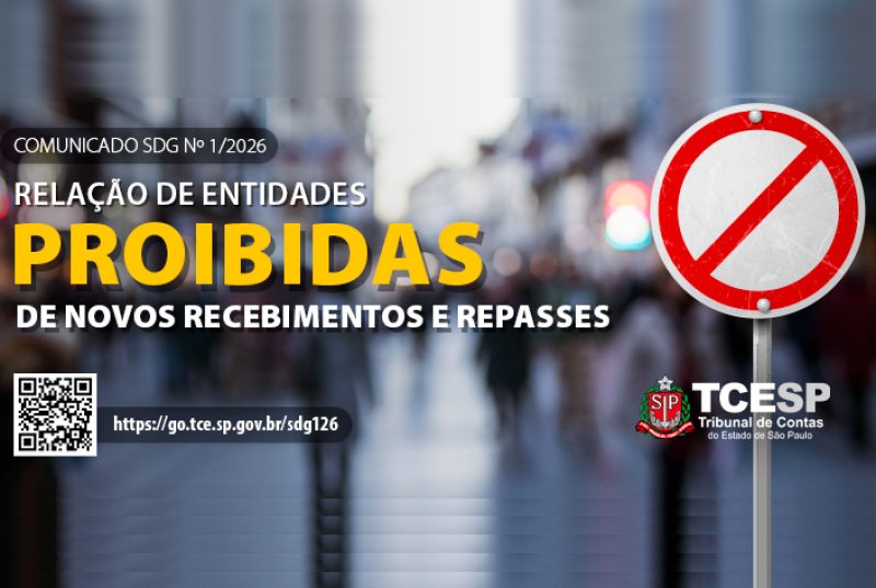 De acordo com o comunicado SDG nº 01/2026 - disponibilizado na edição de terça-feira (13/1) do Diário Oficial Eletrônico do TCESP (D.O.E. TCESP) - um total de 2.014 órgãos ou entidades estão impedidas de receber recursos públicos. A lista atualizada já exclui os órgãos e/ou entidades que regularizaram sua situação perante este Tribunal e inclusão daqueles que foram apenas, cujas decisões transitaram em julgado.