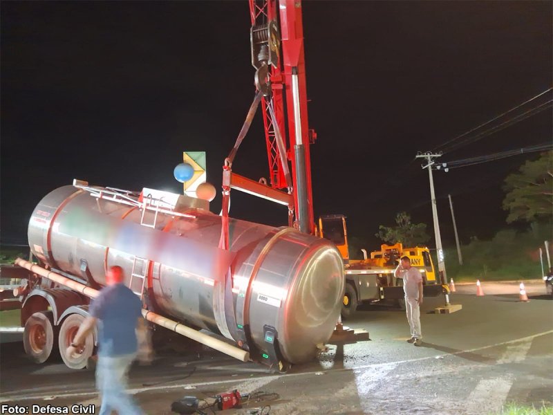 O trabalho para retirada do semirreboque-tanque foi realizado com maquinário especial (guindaste móvel), operado por profissional da área, e apoio da equipe da Defesa Civil Municipal. A operação de remoção terminou por volta das 21h50, quando a via foi totalmente liberada para o trânsito de veículos.
