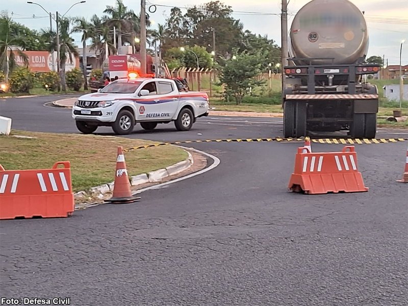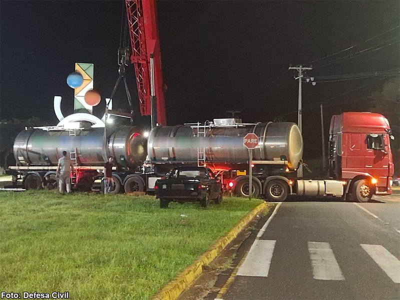 Segundo informações apuradas, o caminhão com dois semirreboques-tanque trafegava pela via de acesso no sentido trevo Haruichi Sakita à Avenida 18 de Junho e na rotatória, em virtude de um problema no pino de engate, um dos semirreboques se desprendeu e ficou imobilizado sobre a via. A equipe da Defesa Civil foi acionada para fazer a sinalização no local até a retirada do semirreboque.