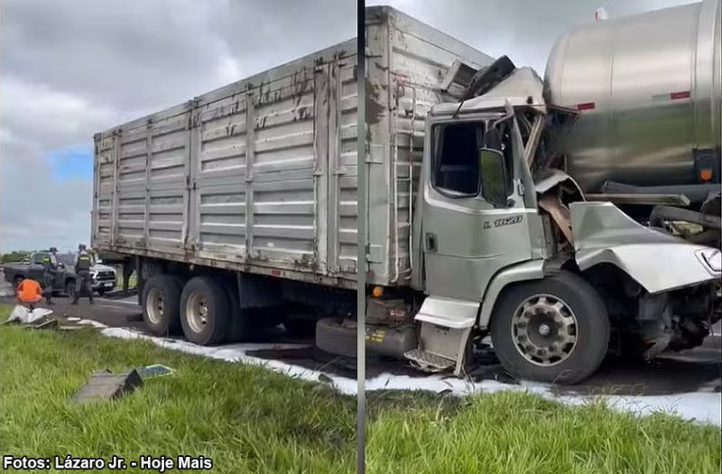 Segundo a Polícia Militar Rodoviária, com o impacto, houve vazamento de óleo no motor de um dos caminhões. Na sequência, o condutor de uma caminhonete perdeu o controle da direção e bateu na traseira do veículo que transportava o material de construção. Veja o vídeo acima.