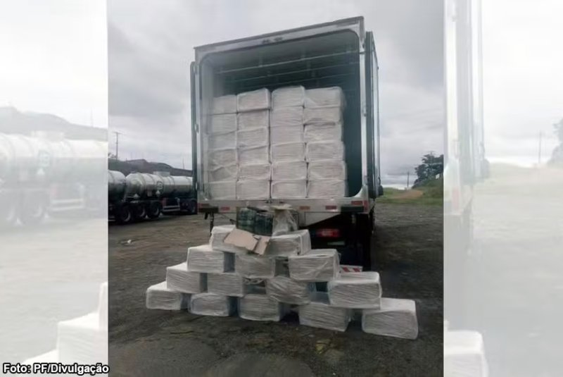 Durante a abordagem a um caminhão baú, no km 18, os policiais localizaram dezenas de fardos da droga no compartimento de carga. Ao todo, foram apreendidos 1.547 kg de maconha.