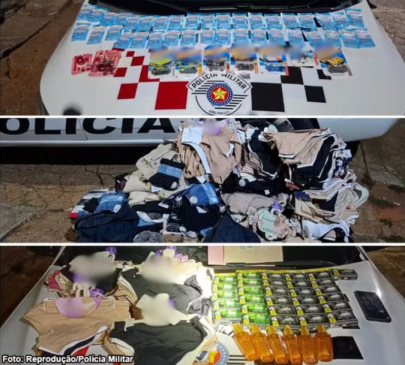 Um dos suspeitos confessou o furto em conjunto com outras pessoas, possivelmente as duas mulheres que já haviam sido presas, segundo a PM. Na vistoria, a polícia encontrou os produtos com etiquetas de diferentes comércios.