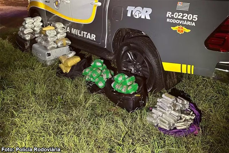Três pessoas foram presas e uma adolescente de 16 anos apreendida neste domingo (8), após a Polícia Rodoviária interceptar uma carga de drogas transportada em um ônibus interestadual, no km 579 da Rodovia Raposo Tavares (SP-270), em Álvares Machado (SP).