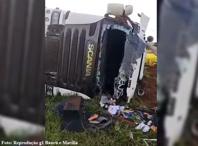 Pai, mãe e filha ficaram feridos após o caminhão em que estavam tombar, na manhã desta quinta-feira (19) no dispositivo de acesso da Rodovia Manílio Gobi (SP-284), em Paraguaçu Paulista (SP).