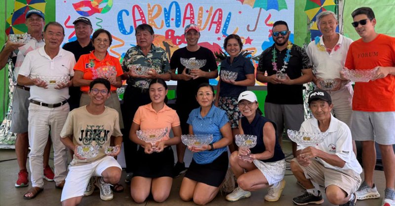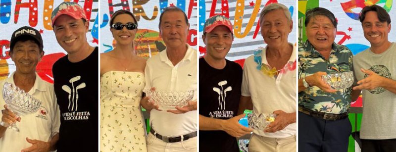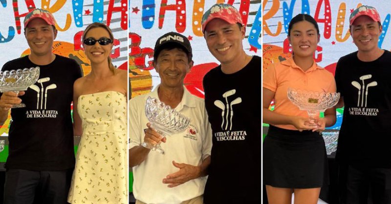 Os golfistas Leonardo Yoshikawa, Augusto Tanaka e Gabriela Amano (foto baixo) faturaram as taças de campeões scratch, em suas respectivas categorias, do Torneio de Carnaval 2026. O evento esportivo premiou o campeão e vice scratch e os melhores classificados handicap no tee azul, tee branco e tee vermelho e os vencedores da premiação especial.