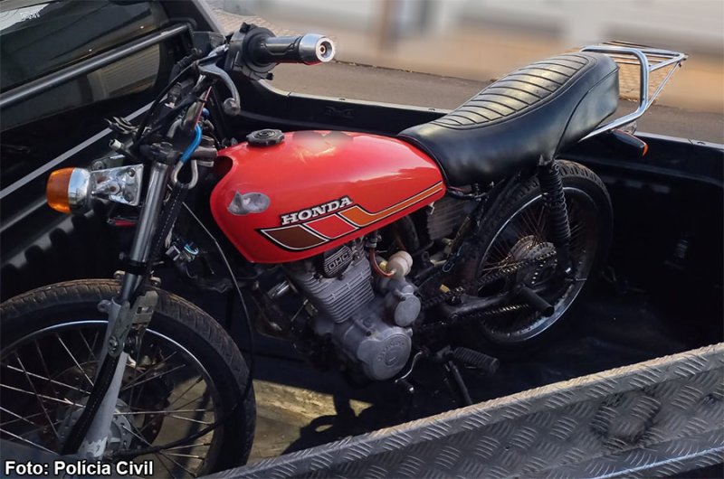 Durante a tentativa de fuga, o adolescente caiu ao solo e foi abordado pelos policiais. Na vistoria da motocicleta, foram constatadas irregularidades: ausência de placa de identificação, chassi adulterado e motor pertencente a outra motocicleta.