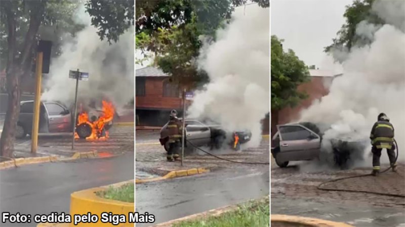 De acordo com as informações iniciais, o veículo trafegava no sentido bairro/centro quando começaram as chamas. O motorista conseguiu parar o carro na esquina ao perceber o início do incêndio e deixar o automóvel em segurança, momento em que teve o apoio de duas pessoas que estavam pelo local.