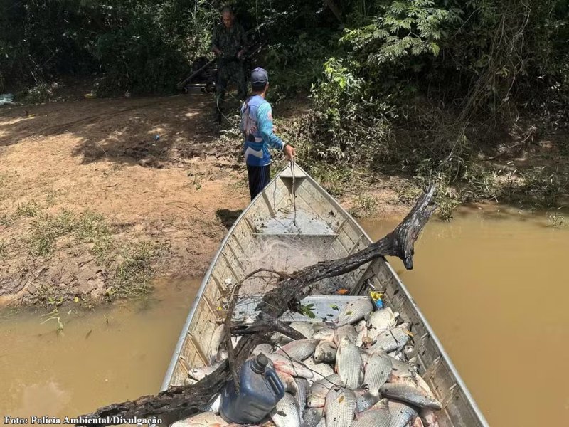 Segundo a Polícia Ambiental, os agentes abordaram a embarcação com os pescadores em um trecho onde a atividade é proibida. No local, foram encontrados peixes capturados com o uso de tarrafas, método irregular.