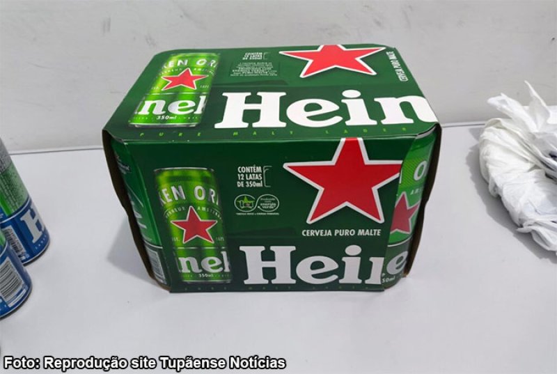 Durante a abordagem, foram localizadas com o suspeito 24 latas de cerveja da marca Heineken. Questionado, ele confessou o furto no local, onde também estava presente o proprietário do estabelecimento.