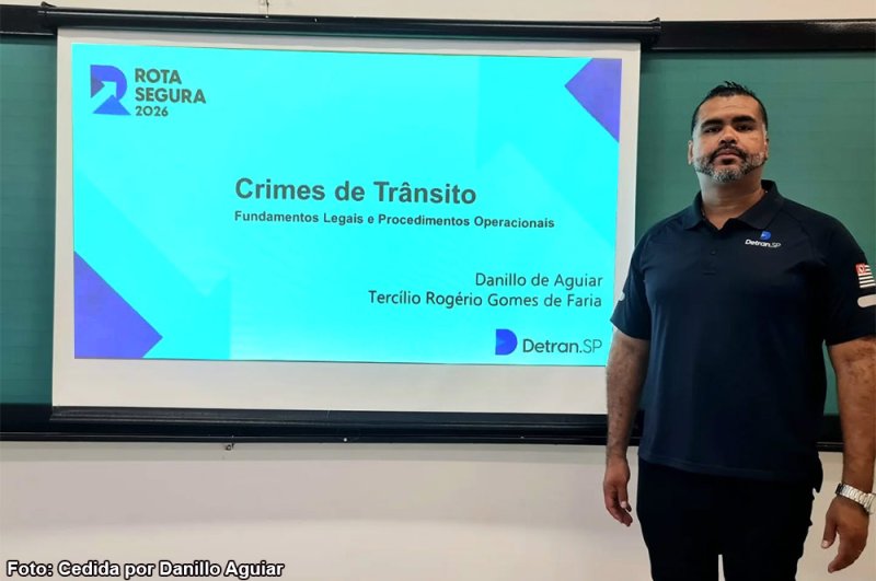O bastense Danillo Aguiar, agente estadual de trânsito do Detran de Bastos, ministrou neste mês o curso de atualização sobre "Crimes de Trânsito" nas cidades de São Paulo (SP) e São José do Rio Preto (SP). O evento educativo, voltado aos colaboradores do Detran.SP, foi realizado durante o workshop de fiscalização "Rota Segura".