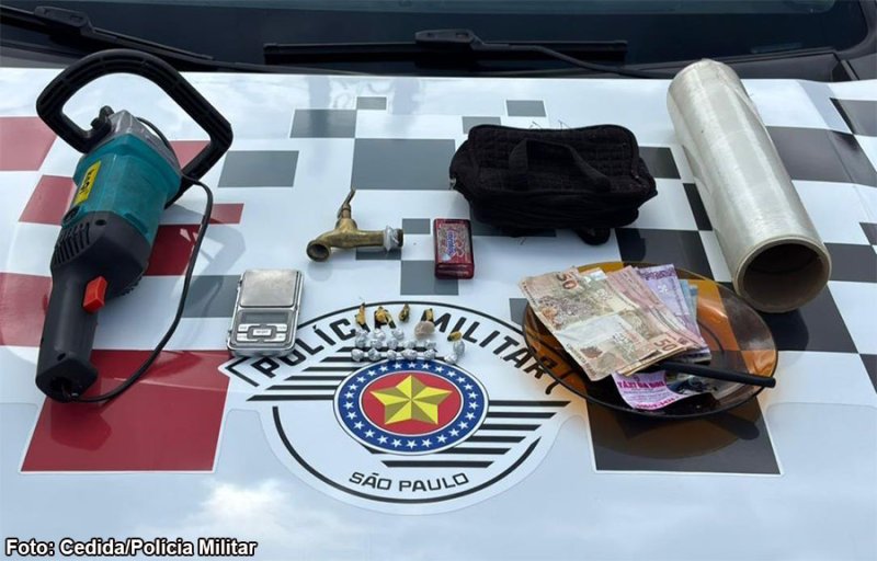 A equipe, a fim de verificar a veracidade da informação, foi até a rua Santa Augusta e ao chegar ao local visualizou o morador da casa na varanda manuseando crack.