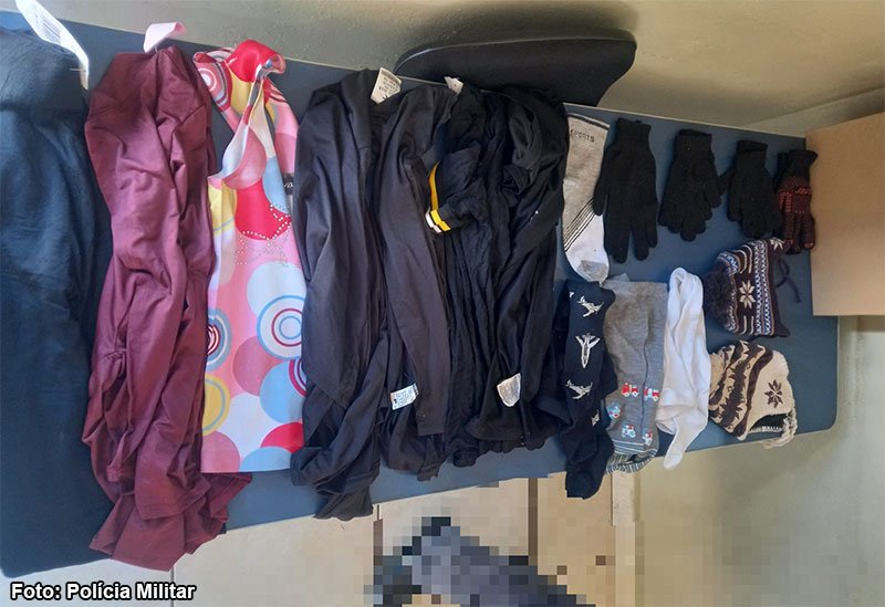 Na abordagem, os policiais constataram que o homem carregava diversas peças de roupas ainda com etiquetas. Diante da situação e do conhecimento prévio de um furto ocorrido em uma loja de roupas da cidade, a equipe se dirigiu até o estabelecimento comercial, onde a proprietária reconheceu os itens como sendo produtos furtados anteriormente.