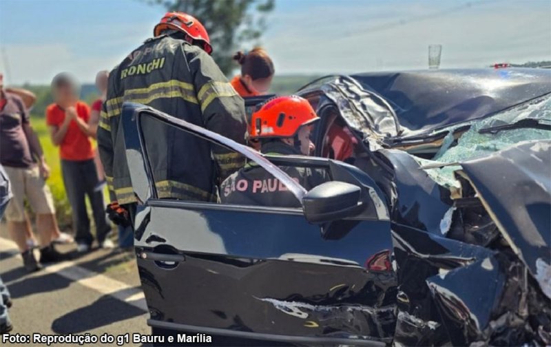 Equipes do Corpo de Bombeiros foram acionadas para o resgate. Com o impacto, a parte dianteira do carro ficou destruída, e foi necessário retirar vítimas presas às ferragens.