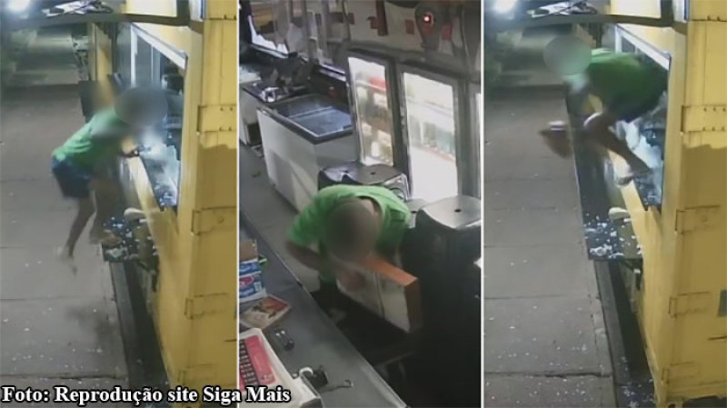 De acordo com as imagens, o crime ocorreu por volta das 3h44, quando o autor se aproximou do local e arremessou um objeto contra o vidro de uma das janelas do trailer, quebrando a estrutura. Em seguida, ele apoiou o pé sobre a bancada de atendimento e conseguiu acessar o interior do espaço.